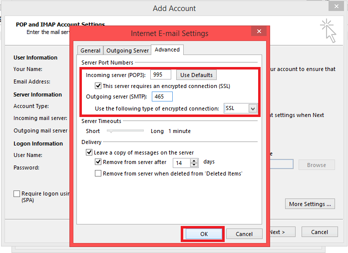 Dùng Outlook client và ThunderBird cũng một thông số như vậy:
