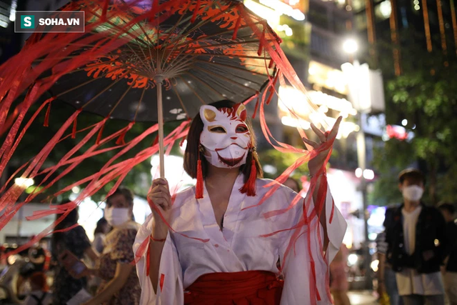 Các tuyến đường quanh khu trung tâm chen chúc, hàng nghìn người từ khắp các quận, huyện tập trung về phố đi bộ Nguyễn Huệ chơi dịp Halloween